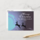 Magic Hjort Family Helgdag-vykort. Julens helgdag-vykort med en magisk julafton. Två hjortar flyger i himmel mot Måne. Trendigets vita skript - anpassa med texten. På baksidan finns en mall för avsändarens adress. Fira helgdagarna med detta magiska julkort.