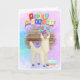 Ett bra födelsedagskort med ett färglöst lama som arbetar för att bli en lamakorn (lägg märke till huvudbandet) och en födelsedagskalas. Inuti meddelanden står det: "Här hoppas du att din födelsedag är lika magisk som en plåga."
