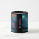 Magic Måne River Träd i stil i en oljemålning. Moonlight som lyssnar på floden, blommor på banken, berg i bakgrunden. Romantisk och mystisk. Redigerbar namn. Unik, personlig mugg.