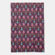 Katt- och roligt julhandduk med hand plockade som illustration av katt, hund och mus som nötköttsbaletter. Bakgrunden är röd.