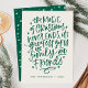 Skicka magiska semesterhälsningar till vänner och familj med vårt festliga icke-fotokort för helgdag. Uttrycket "Julens magi upphör aldrig, dess underbarare gåvor är familj och vänner" visas i ett handskript med grönt och med en beige bakgrund. Anpassa framsidan av det söta helgdag genom att lägga till ditt namn och året. Kortet återgår till att innehålla anpassningsbarnas meddelande i grönt inuti en beige rektangel ram. Bakgrunden är mönster av beige stjärnor och punkter mot gröntens bakgrund.