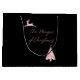 Modern svart- och rosa-design dekorerad med ett skriptteckensnitt i renar och träd.