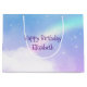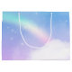 Mjuk väska med en mjuk och underbar bakgrundsbild. Pastellkritor och rosa moln med magisk regnbåge.