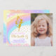 Inbjudan dina gäster till ett magiskt firande med den här regnbågsfestkallelsen med ditt barns foto! Med ett drömfärdigt pastel färg, en snygg design och plats för ett anpassningsbar foto, är det här kortet perfekt för party med fetstil, vita födelsedagar och magiskt firande för flickor. Anpassa enkelt all text och ladda upp fotot med bara några klick.