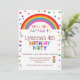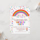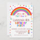 Fira din lilla speciella dag med den här färgstarka regnbågsinbjudan! Perfekt för barn party har en lysande, glad färg och roligt design inslag för att tillfredsställa gäster i alla åldrar. Anpassa enkelt ditt barns namn, ålder, datum och party.