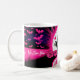 Den här rosa Valentine Day-kaffet mugg har en charmerande och romantisk design. En häxsilhuett med blommande hår och en spetsig hatt rider en broomstick mot en glödande fullt måne. Scenen kommer till liv med pulserande rosa hues, hjärtan och blåsande ro som ger en viskös och magisk beröring. Att flyga fladdermus nattetid i himmel stärker den mystiska vibben, medan texten "Vi kärlek er" och personlig namn "Jennifer" kompletterar det hjärtliga budskapet. Den här utformningen går helt och hållet runt mugg, och både namn och texten kan anpassas för att göra den unik för dig. Perfekt för gåva på Alla hjärtans dag!
