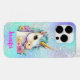 Den här magiska telefonväskan har en underbar Unicorn med en akvasmane mot gnistrans bakgrund. Designade på lila, lavenders och pinkar med glitteregala gnistor och personlig med ditt namn. Gör en underbar gåva till flickor i alla åldrar!