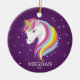Anpassa Dated Cute Unicorn-julprydnaden med magisk enmajs på lila.