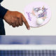 Personlig pingpongpaddel med en vattenfärgad illustration av eleganten med en vattenfärg för enmajs mamma och baby med lila mane och förlås. Fintvätt av orangens blommor runt blommarna.