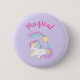 En knapp med en snygg vit majsmajs med pastellgrönt, lila, gult och rosa, klå och svan. Denna magiska varelse sover fredligt med en färgad som skjuter stjärna ovanför. Texten säger "Magiskt" i ett teckensnitt för rosa trendig. Pastellns lila och vit polka punktbakgrund.