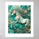 En magisk vit unicorn på en teal vattensfärgad bakgrund med gräddblommor fantasy AI genererade konst