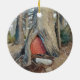 Denna julprydnad presenterar ett foto som tas i älvaby i skogen av Killingworth, Connecticut på Winterberryjulgranlantgården