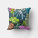 Original artwork "Magical Botanicals" features rich, colorful tropical plant leaves on a throw pillow