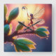 Magical fairy with dewdrop lantern on the branch fyrkantig klocka