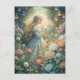 This enchanting postcard depicts a fairytale moment of a young woman holding a glowing light as she wanders through a garden filled with blooming roses and softly glowing lanterns. Her flowing gown and golden hair shimmer in the gentle light, creating a magical, dreamlike atmosphere. Perfect for lovers of fantasy, romance, and ethereal art, this piece captures the beauty of wonder, peace, and imagination.