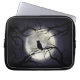 En lone uggla på en gren, en magical måne på baksidaen, i mörkret av skogen.