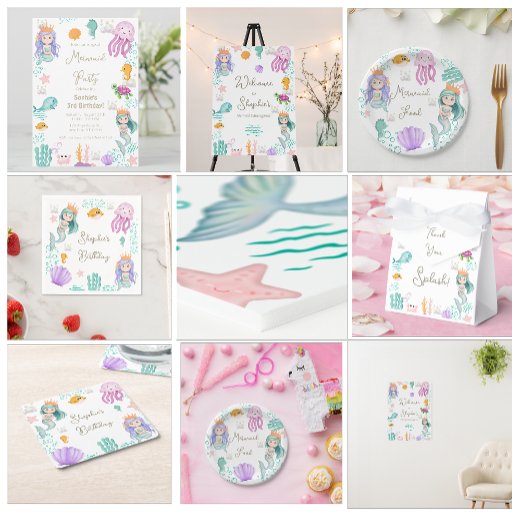 Have a splash under the sea with our magical mermaid birthday party design! Colorful, whimsical and absolutely fun for your little one's birthday extravaganza. This design is fully customizable and comes with matching party supplies in our shop.