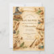 This enchanting baby shower design features a magical vintage storybook scene filled with charming wizard-inspired details. Delicate illustrations of potion bottles, spell books, antique keys, candles, and a wise little owl surround an ornate decorative frame, creating a whimsical atmosphere perfect for a magical celebration. The warm parchment background and soft watercolor textures give the design a nostalgic fairy-tale aesthetic inspired by classic fantasy illustrations. Ideal for wizard-themed baby showers, magical woodland celebrations, or whimsical fantasy gatherings welcoming a little wizard on the way.