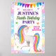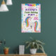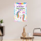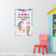 Bright and colorful magical unicorn any age birthday party hanging poster, change the text to anything you want when you order