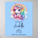 Greet your guests with a splash of color and magic using this Magical Unicorn Birthday Welcome Poster. Featuring an adorable baby unicorn with a vibrant rainbow mane, fluffy clouds, and a charming pink bow, this sign sets the perfect tone for a whimsical celebration.