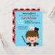 Ett inbjudan som matchar din födelsedagsfest för magiska program! Den har en söt liten pojke i en magiker utrustning av svart skafnick jacka och röd bukslips med ett magiskt trollspö i handen. Han har en vit kniv på håret bredvid den magiska hatten. Underbar för party där du anställer magiker eller om födelsedagspojken gillar att utföra magiska tricks. På motsatt sida finns en mönster som är gjord med att spela upp kortsymboler för ess, hjärtan, klubbar och diamanter. Anpassa enkelt med dina party-detaljer.