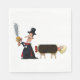 En trollkarl som gör ett trick med en motorsåg. Den här designen ser ut att vara effektiv på dessa Pappra servetter