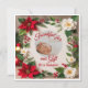 Fira årstidens glädje med detta vackert designade platta gratulationskort, perfekt för att dela din familjs senaste välsignelse. Framsidan har en festlig blomsterkant av röda julstjärnor, vita blommor, tallkvistar och bär, som ramar in ett mjukt, krämfärgat utrymme där ett foto av ditt barn ger kortet liv. Orden "Tack för vår gåva denna årstid" visas under bilden och uttrycker hjärtlig tacksamhet.