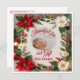 Fira årstidens glädje med detta vackert designade platta vykort, perfekt för att dela din familjs senaste välsignelse. Framsidan har en festlig blomsterkant av röda julstjärnor, vita blommor, tallkvistar och bär, som inramar ett mjukt, krämfärgat utrymme där ett foto av ditt barn ger kortet liv. Orden "Tack för vår gåva denna årstid" visas under bilden och uttrycker hjärtlig tacksamhet.