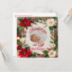 Fira årstidens glädje med detta vackert designade platta vykort, perfekt för att dela din familjs senaste välsignelse. Framsidan har en festlig blomsterkant av röda julstjärnor, vita blommor, grangrenar och bär, som inramar ett mjukt, krämfärgat utrymme där ett foto av din baby ger kortet liv. Orden "Tack för vår gåva denna årstid" visas under bilden och uttrycker hjärtlig tacksamhet.