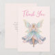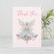 Tackkort med en elegant bild av en himmelsk änglaälva. Med rosa och blå pastellfärgade vingar och klänning. Blommor i hennes hår. Stilsäker magisk stämning.