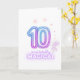 Fira en milstolpe födelsedag med förtrollning! Detta fantasifulla vikta gratulationskort har en pastellfärgad änga omgiven av gnistrande stjärnor, perfekt för att markera en magisk 10-årsdag. Inuti bär det övre vänstra hörnet en stänk av stjärnstoftsentiment, medan det nedre högra hörnet levererar en hjärtlig födelsedagsönskan. Idealiskt för barn som älskar fantasin, ängor och en touch av under, gör detta kort att fylla tio år verkligen oförglömligt.