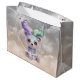 Magisk björn unge i pastel glitter. Den här fantastiska designen har en söt björn unge vars stora, uttryckliga ögon fångar hjärtat. Ovanför sitt lilla huvud ger pastellhornen i delikata färgader av lila, grönt och blått varelsen en magisk och lekfull charm. En ljusblå stjärna gnistar på framsidan och ger den en aning fantasi. Fintliga gröntar med små löv är inslagna runt nacke, vilket ger bilden en naturlig och kärleksfull beröring.