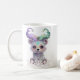 Magisk björn unge i pastel glitter. Den här fantastiska designen har en söt björn unge vars stora, uttryckliga ögon fångar hjärtat. Ovanför sitt lilla huvud ger pastellhornen i delikata färgader av lila, grönt och blått varelsen en magisk och lekfull charm. En ljusblå stjärna gnistar på framsidan och ger den en aning fantasi. Fintliga gröntar med små löv är inslagna runt nacke, vilket ger bilden en naturlig och kärleksfull beröring.