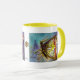 Kvismisk och färglös mousserande fjäril på ljusa färger. Akryl- och vattenfärgsmålning med golden och silver-folie på arbetsytan i ljust violett, rosa, blått, gult, rött, grönt färg, glitter, kosmisk pälsstoft. Coola, konstnärlig och mångsidig design för alla ändamål.