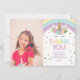 Detta är ett tackkort med enhörning och regnbåge tema för födelsedagsfirande med bild.