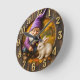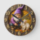 Magisk dvärg & kanin i höstskog rund klocka