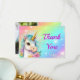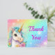 Ett magiskt Enhörning födelsedags tackkort med en vacker enhörning med gnistrande glitter mot en regnbågsbakgrund. Baksidan har ditt favoritfoto och personliga meddelande på en regnbågsbakgrund. Matchande festtillbehör tillgängliga.