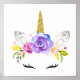 Lägg till den sista handen på ditt barns rum eller sovrum med denna vackra konsttryck! Designen har en akvarell enhörning med guldhorn och blomsterkrans.