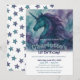 Fira en liten enas stora dag med denna drömmiga enhörningsfödelsedagsinbjudan med en rik teal- och lila alkoholbläckdesign. Helt anpassningsbar med ditt barns namn, ålder, festdetaljer och meddelande.