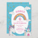 Gör ditt barns födelsedag oförglömlig med den här Cute Girly Unicorn Magic Födelsedagsfest Numoned bjudning. Den här inbjudan har en fin enhörning, en pulserande regnbåge, söta moln och gnistor. Den anger perfektens ton för ett magiskt party. Designad specifikt för en flickas encorn party, dess charmerande design stimulerar både barn och föräldrar. Du kan anpassa inbjudan till din barn, du kan också ändra den blå bakgrunden färg till kostym till händelsekaletten färg bättre om du vill. Lägg till deras namn för den personliga beröringen av extra. Skapa varaktiga minnen med den här vackra enmajsfödelsedagsinbjudan, perfekt för alla barns party fyllda med stollig och .