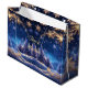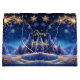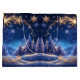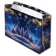 Julsäsongen - en fullt av , glädje, hopp, förväntningar och överraskningar. Den här presentsäcken har en gyllene snöflingor-snurrning på den blå natten himmel ovanför vinterskogen. Vilken underbar presentväska för alla!