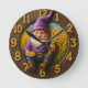Denna förtrollande klocka visar en gnom med lila mössa som håller gyllene vete på ett solbelyst fält. Den träramen och de sädesslagsformade siffrorna skapar lantlig charm - perfekt som julklappar eller för köket på en bondgård. Lekfull och funktionell!