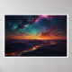 En hisnande uppvisning av norrsken som dansar över natthimlen, mot en lugn naturlig landskap. Perfekt för naturälskare och astronomi-entusiaster.