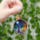 Magisk nattkonst i himmel med glansigt mönster rund silverfärgad nyckelring