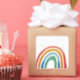 Denna design handlar inte om perfekta, skarpa linjer; det handlar om den vackra oförutsägbarheten hos vatten och pigment. Varje regnbågsbåge är handlagd, vilket låter färgerna blöda in i varandra precis som de gör på himlen efter en storm.