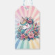 Magisk Rosa och Guld Unicorn och Flowers Presentetikett