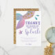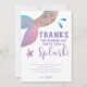 Magisk och fantasifull undervattens tema födelsedagsfest tackkort för barn med en sjöjungfrus svans i rosa, lila och turkos färg med falskt guld glitterfjäll. Texten säger "tack för att du gjorde min fest till en sådan succé". Standardmeddelandet säger "tack för att du firade med mig". Anpassa denna produkt genom att lägga till ditt barns namn längst ner. Perfekt för en flickas födelsedag.