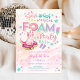 Gör ditt barns firande oförglömligt med denna fantasifulla skumfest-födelsedagsinbjudan med pastellfärger, lekfulla grafik och en magisk enhörningskatt på en munkfloate. Perfekt för sommarfödelsedagar, denna design blandar kul och fantasi med glasskoner, flip-flops och gnistrande stjärnor. Den mjuka akvarellbakgrunden ger en drömlik känsla, vilket gör den idealisk för småbarn och barn som älskar färgglada, fantasifulla teman. Anpassa enkelt med dina festdetaljer och skapa tonen för en glad, stänkningsfylld fest!