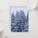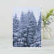 Julpartiets inbjudan har en snöskog. Snöfir träd i blå toner på ömtålig bakgrund. Originalfotot. Underbar, romantisk, elegant inbjudan till din jul party! Anpassningsbar.