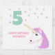 Flickors födelsedagstema med magiska enhörningar. Teal, rosa och lila färgpalett.